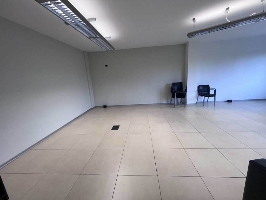 Il pavimento galleggiante è dotato di torrette di alimentazione e cablaggio strutturato cat 6 con collegamenti internet FTTH raccolti in un armadio di cablaggio dotato di striscia di alimentazione e patch panel.